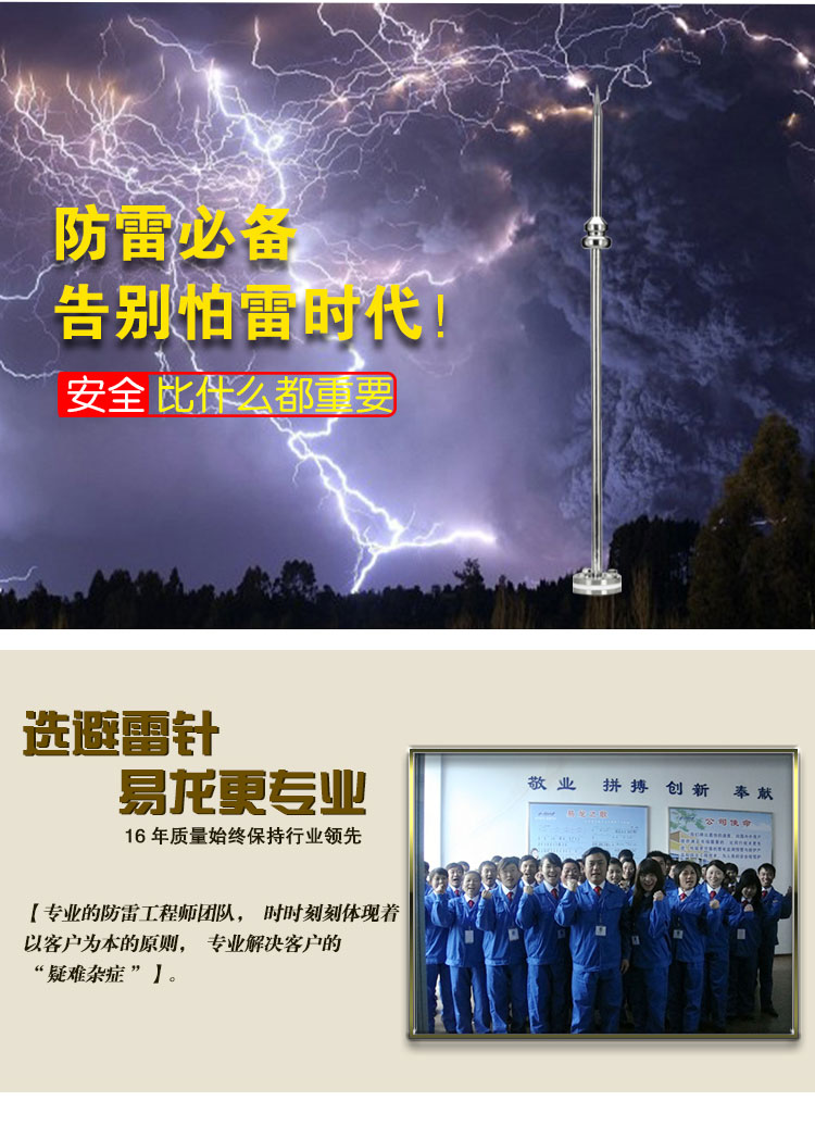 1)避雷針各連接部位的連接應可靠,不允許松動(dòng);