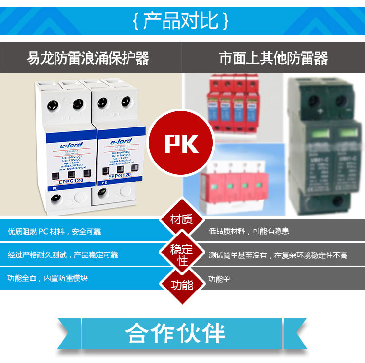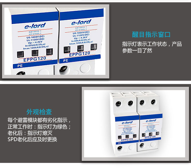 EPPG系列直流光伏電源浪涌保護器是由多個(gè)單片式限壓?jiǎn)卧M成,廣泛應用于光伏直流1000V發(fā)電系統中,對太陽(yáng)能電池板,匯流箱、直流配電柜及光伏逆變器等系統配套設備進(jìn)行雷電感應浪涌防護,能有效防止由雷電感應波和線(xiàn)路浪涌沖擊所造成的設備損壞,最大程度的保證了光伏發(fā)電系統的穩定性和可靠性,保護光伏系統穩定可靠地運行。