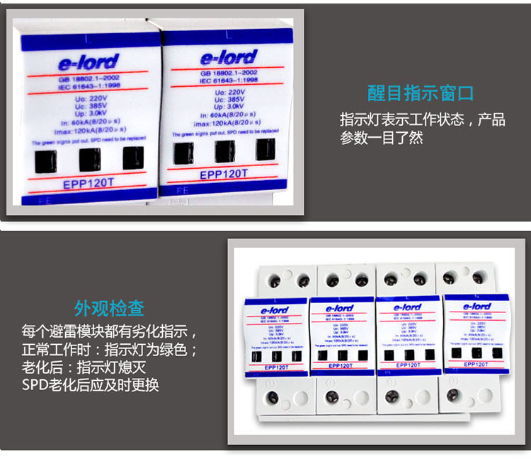 EPP系列交流型電源SPD是由多個(gè)單片式防雷芯片組成,針對不同配電系統所要求,可以自由組合成單相或三相保護,防止感應過(guò)電壓或操作過(guò)電壓對低壓用電設備的損壞