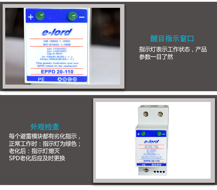 EPPD系列低壓直流型電源SPD是單體電源防雷模塊,防止感應過(guò)電壓或操作過(guò)電壓對低壓交流