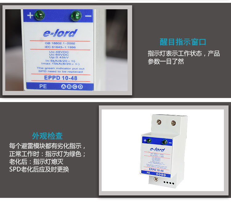 EPPD系列低壓直流型電源SPD是單體電源防雷模塊,防止感應過(guò)電壓或操作過(guò)電壓對低壓交流用電設備的損壞。