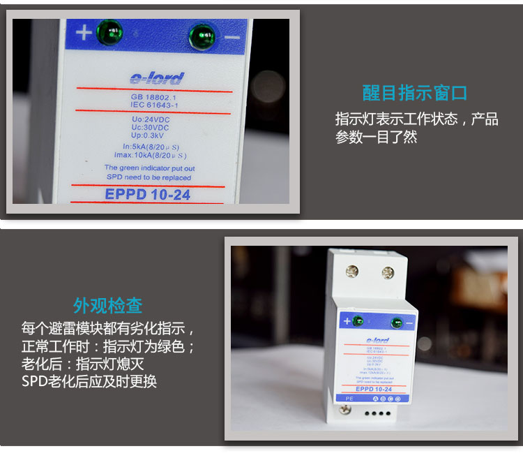 EPPD系列低壓直流型電源SPD是單體電源防雷模塊,防止感應過(guò)電壓或操作過(guò)電壓對低壓交流用電設備的損壞。