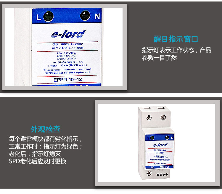 EPPD系列低壓直流型電源SPD是單體電源防雷模塊,防止感應過(guò)電壓或操作過(guò)電壓對低壓交流用電設備的損壞。